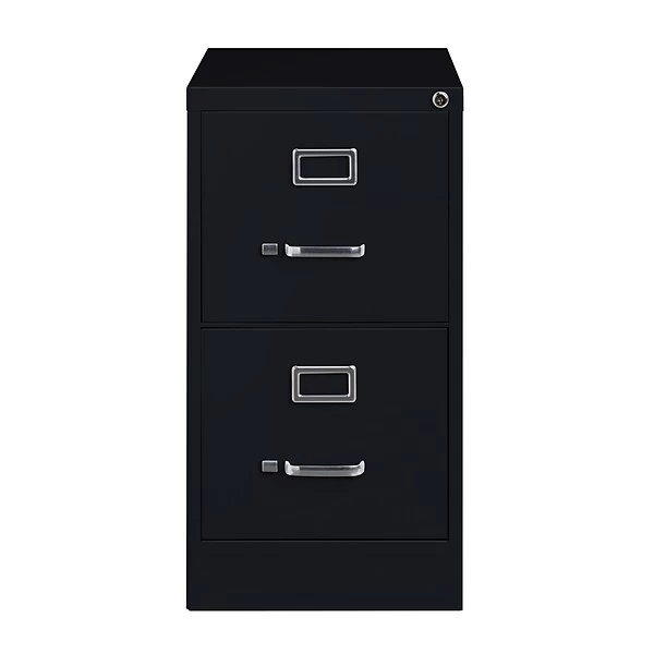 - Two drawer commercial grade vertical filing cabinet that accommodates letter-size hanging file folders
