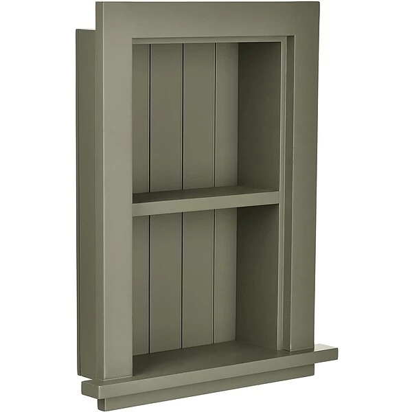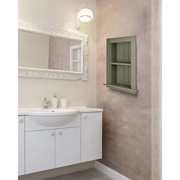 Fully assembled, beautifully finished AdirHome 12.75 in. W Wood Bathroom Recessed Wall Shelf in Green units in solid hardwood serve many uses for imaginative homeowners looking to add both style and utility to rooms anywhere in the home or office. In bathrooms, use them to hold often-used personal-care products such tissues, lotions and cotton swabs and to provide courtesy items for house guests. Elsewhere in your home or office they are perfect to showcase decorative accents such as photos, awards, artwork and other accents in dens, entryways or wherever blank walls cry for a focal point. Easy to mount onto any wall with installation instructions and hardware, the AdirHome 12.75 in. W Wood Bathroom Recessed Wall Shelf is sized to fit into existing or easily cut new openings.