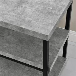 - Made of laminated particleboard and metal, the stunning light gray, faux-concrete finish paired with the dark gray, powder-coated metal frame creates a clean, modern structure that’ll add style to any room