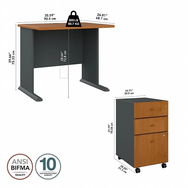 - Bundle includes: 36W x 27D Desk, 3 Drawer Mobile File Cabinet