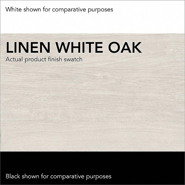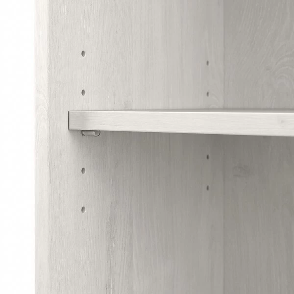 - Tall bookcase made of laminate over engineered wood in linen white oak finish