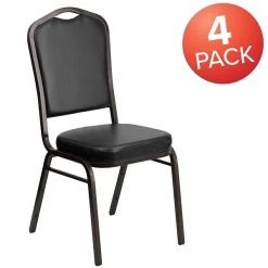Flash Furniture HERCULES Trapezoidal Back Banquet Chairs W/Black Vinyl & Gold Frame, 4/Pack