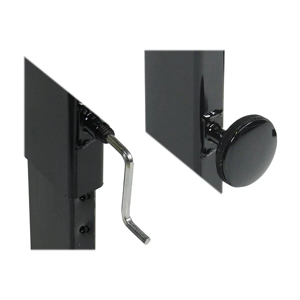 - Comes with two large, easy-to-use height-adjustment knobs for fast height changes, and a set of screws (with a wrench) for maximum tamper resistance