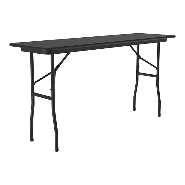 The Correll folding table is durable for heavy-duty home, office, school, church, food service, and commercial use. Its thermal-fused laminate top is water-, stain-, and dent-resistant. The table folds for portability and storage space.