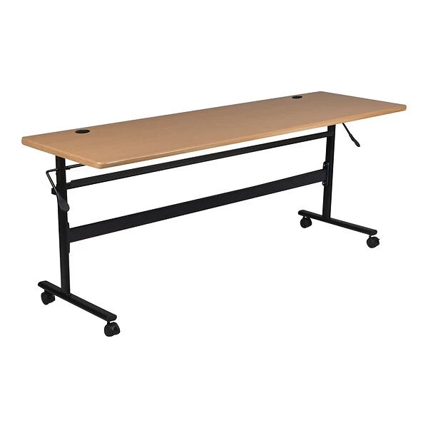 Create space for equipment, files and supplies with this training table. The simple push lever easily releases the tabletop for vertical storage in small spaces, and they’re nestable, so several can be stored together. The vacuum-formed PVC top is durable, and the built-in grommet holes keep cords organized and out of the way. This Essentials Flipper table’s four casters make transporting it simple.