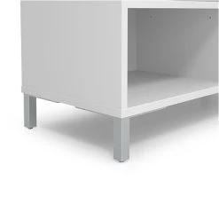 - Features two shelves adjustable in 1″ increments and a fixed bottom shelf