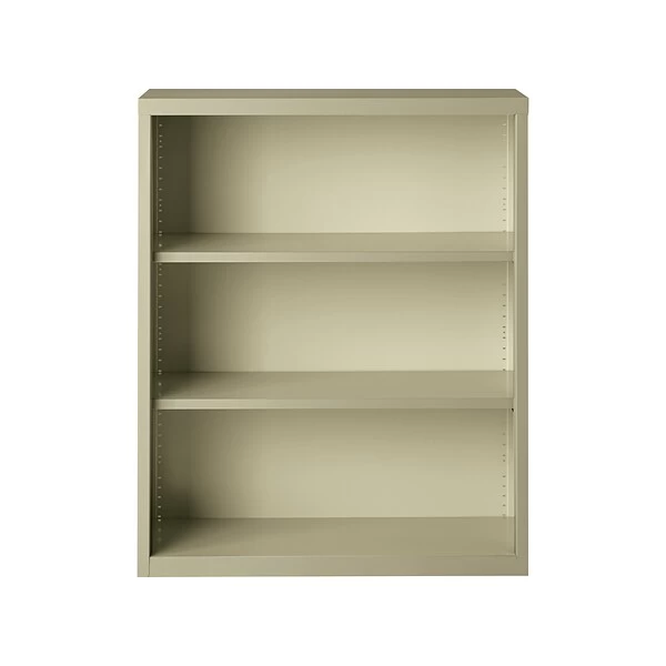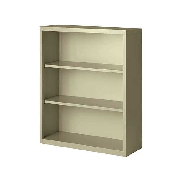 - Three-shelf steel bookcase in baked putty enamel finish perfect for schools, libraries, and offices