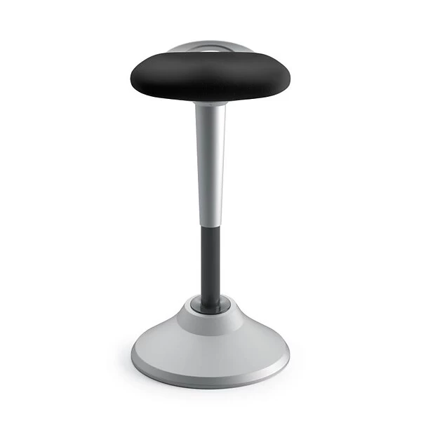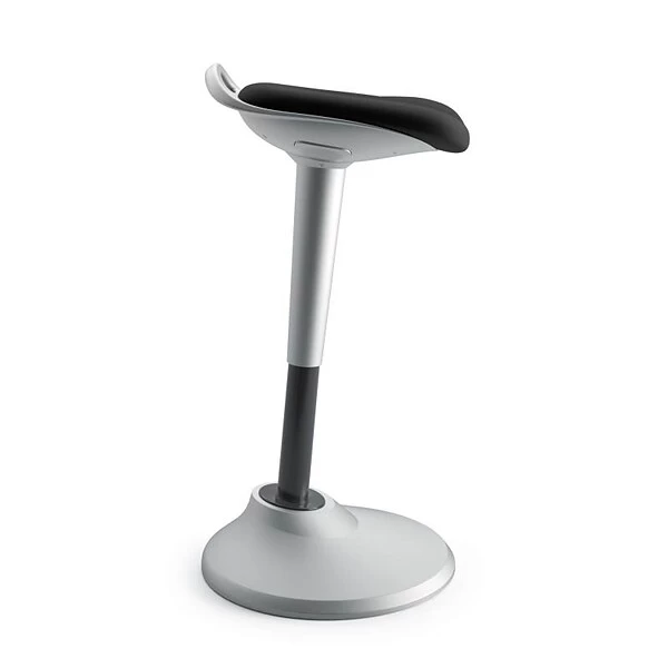The HON Perch is an active seating solution that supports seated and standing-height positions and keeps you energized and productive all day. The pivoting base tilts forward to bring you closer to your work when desired, while maintaining a healthier posture at all times. Achieve any position in any space by easily moving the lightweight frame with the flared handle on the seat back. Quickly adjust the seat height at the touch of a button to fit different users or worksurface heights. Bring a wider range of motion to a greater variety of spaces with the HON Perch. Base color is Silver and fabric color is Black.