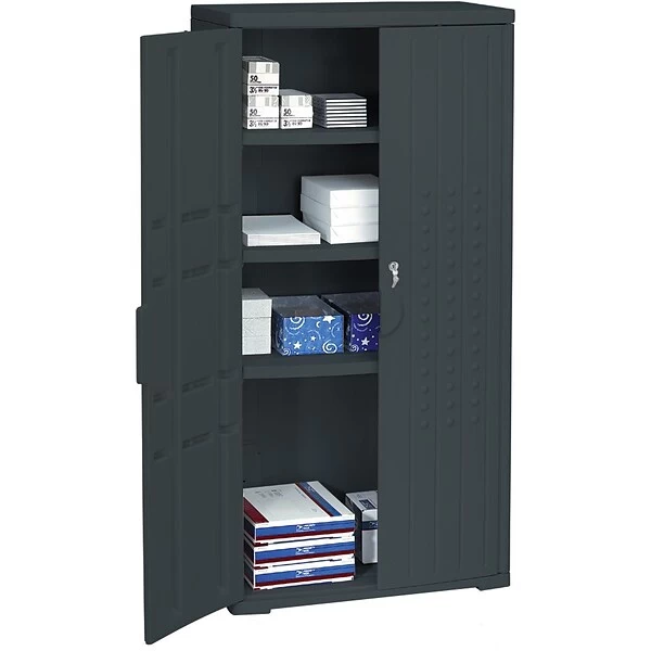 Iceberg Storage cabinet in black color includes three shelves, two adjustable shelves that can securely holds up to 75 lbs and key lock system for security purpose. Cabinet is easy to clean and offers resistance towards chemicals.