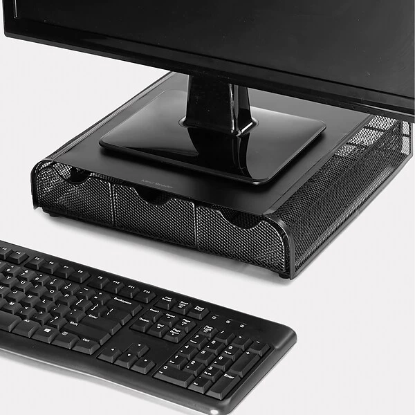 - save valuable desk space by putting your monitor on top
