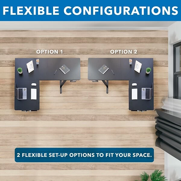 - Two flexible installation options to fit your space thanks to the 3-piece desktop design