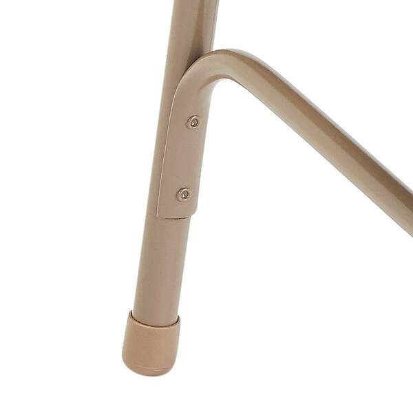 - Beige 18 gauge steel frame upholstered with soft brown vinyl covering plush foam