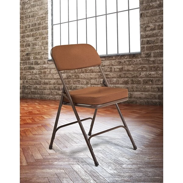 Our 3200 Series has brought the potential comfort of folding chair to a whole new level with a super-soft 2″ thick cushion. Features include an institutional-grade vinyl or fabric upholstered box seat on a Masonite board. The large contoured padded backrests are fully covered in matching vinyl or Scotchgarded fabric on both sides. The institutional-grade frame is made from heavy-duty powder-coated 18-gauge round tubing with two U-shaped double-riveted cross-braces – one in front and one in the back – to securely support the double-hinged legs. Color-coordinated V-tip stability plugs provide added reinforcement at the frame’s junction and matching replaceable glides prevent floor damage. The 3200 Series meets MAS Certified Green and ANSI/BIFMA standards.