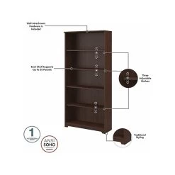 Give your workspace a charming bookshelf built with the style and strength to support the professionals of today. The Office by kathy ireland® Echo 5 Shelf Bookcase offers wide lines and a commercial-grade construction designed to impress and endure. Fashionable yet functional, the contemporary Bookcase combines two fixed and three adjustable shelves for convenient, flexible storage perfect for work materials, books or decorative accents. Two elegant finishes coordinate with your favorite décor and accessories to feel at home wherever you work or live. From Office by kathy ireland® and Bush Business Furniture, the 5 Shelf Bookcase comes with a 3 Year Manufacturer’s Warranty and meets ANSI/BIFMA quality standards. Browse our full line of contemporary furniture to create an office set you’ll love for years to come. Celebrate your unique style and personality with the Echo Collection.