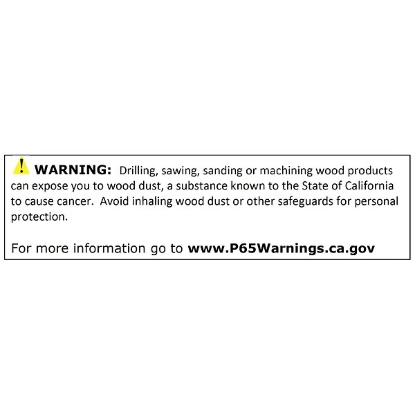 - ā WARNING: Drilling, sawing, sanding or machining wood products can expose you to wood dust, a substance known to the State of California to cause cancer. Avoid inhaling wood dust or use a dust mask or other safeguards for personal protection. For more information go to www.P65Warnings.ca.gov