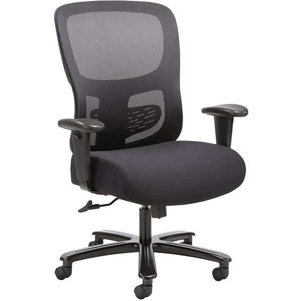 The 1-Forty-One big and tall task chair offers luxurious comfort and support to people up to 350 pounds. Customizable features on this chair include an adjustable lumbar support for the lower back, height-adjustable arms and a 360-swivel seat that quickly moves up and down to fit a variety of users. The black mesh back creates breathable support that stretches to reduce pressure points, while the cushioned Black fabric seat offers plush comfort all day long. Whether used in a workstation or a home office, this chair provides the upscale style, ergonomic support and low price that makes it an attractive option for anyone seeking a little extra structural support. This chair meets or exceeds industry standards for safety and durability, and is backed by a limited 3-year warranty.