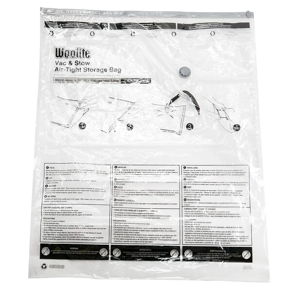 The Woolite 1Pc Air-Tight Cube Jumbo Vacuum Storage Bags are ideal for storing bigger items such as bedding in addition to smaller items like your clothing while protecting against water damage, dirt, mildew, and odors.