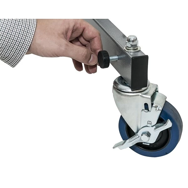 - Wheels feature foot-controlled locks
